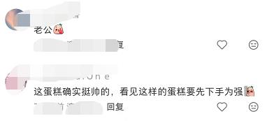 评论区迅速歪楼:“蛋糕好帅,有空我也去看看”;“看见这样的蛋糕要先下手为强”;“这个蛋糕甜到心里了”……