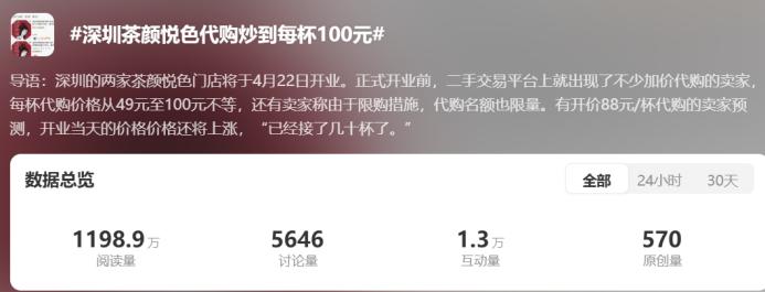 这两天,茶颜悦色深圳店开业的消息几乎刷爆了各大社交平台。排队超5小时、黄牛炒到100元一杯、双店同开……话题一个接一个,刷屏刷到手软。