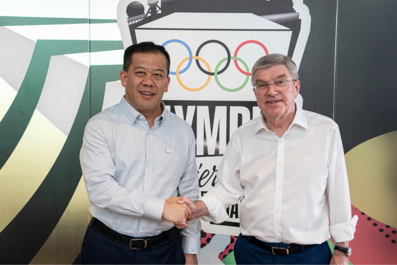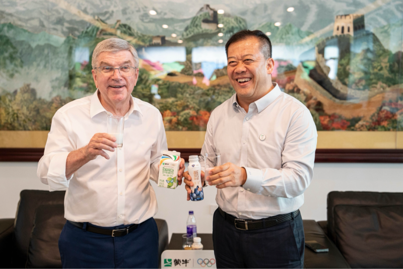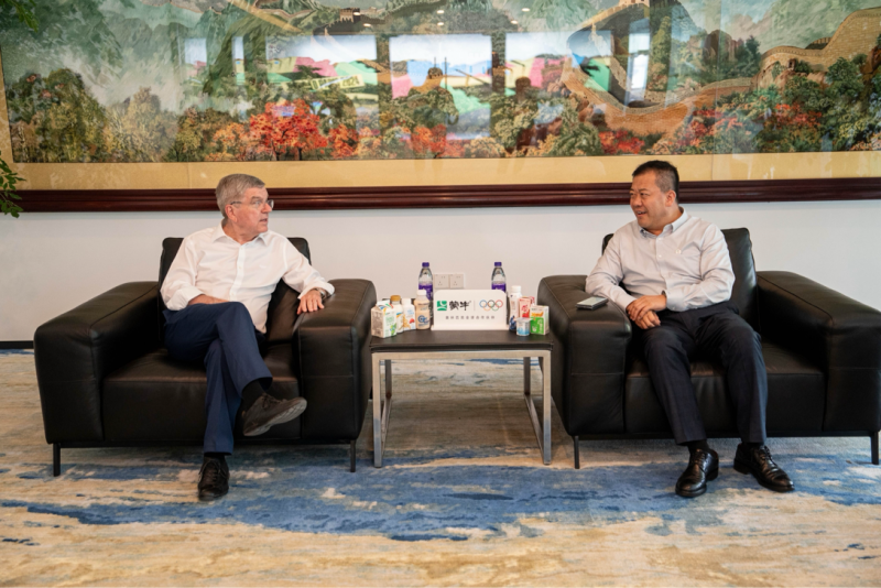 5月19日,蒙牛集团总裁高飞与国际奥委会主席托马斯·巴赫在上海会面,双方针对共同推动全球体育事业、可持续发展等相关话题举行会谈,共同期待第33届夏季奥林匹克运动会(2024年巴黎奥运会)的举办。