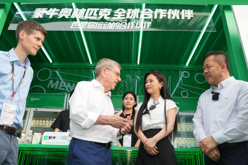 5月19日下午,巴黎奥运会资格系列赛在上海黄浦滨江举办。国际奥委会主席托马斯·巴赫与蒙牛集团总裁高飞一起参观了蒙牛集团精心打造的奥运主题展台,并与蒙牛奥运要强大使“义肢舞者”廖智进行亲切互动。
